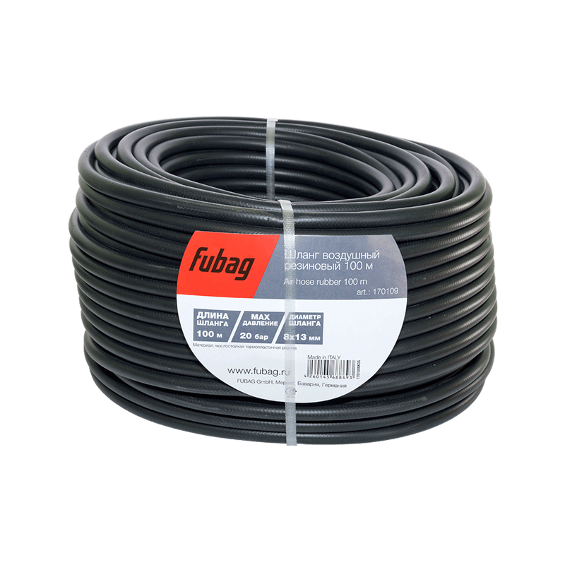 Шланг имеет внутренний диаметр 8 мм и внешний диаметр 13 мм. Бухта длиной 100 метров позволяет отрезать необходимое количество шланга для конкретных задач.